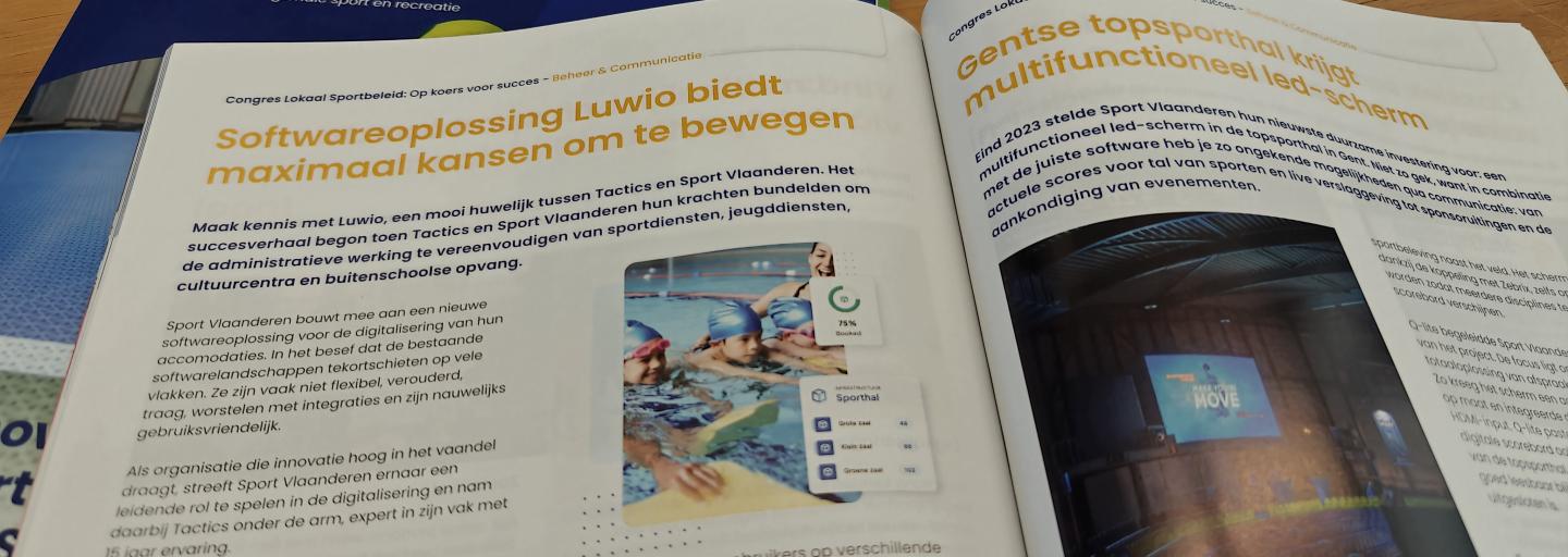 Maak kennis met Luwio, een mooi huwelijk tussen Tactics en Sport Vlaanderen. Het succesverhaal begon toen Tactics en Sport Vlaanderen hun krachten bundelden om de administratieve werking te vereenvoudigen van sportdiensten, jeugddiensten, cultuurcentra en buitenschoolse opvang.